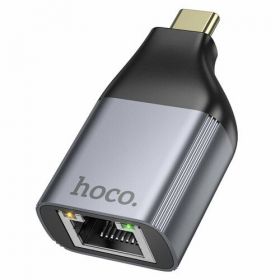 Переходник с Type-C на RJ45, UA35, HOCO, цвет металлический черный
