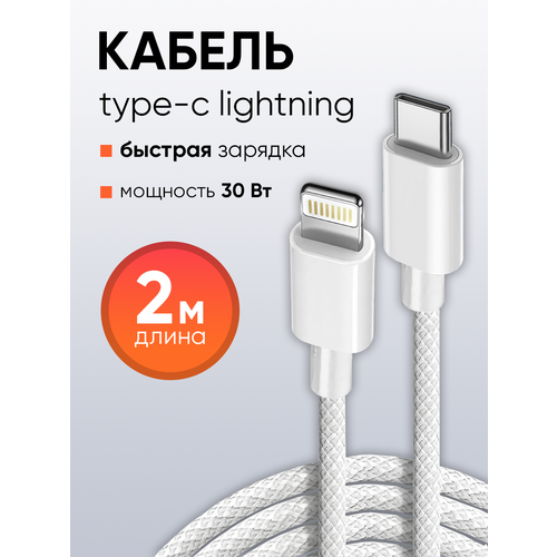 Найти - Провод для айфона, WALКЕR, C860, 2 метра, 30W, Type-C-Lightning, поддержка PD, нейлоновый кабель, для смартфона, Iphone/Apple, белый