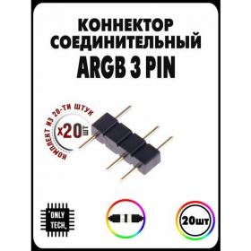 ARGB Соединительный коннектор для подсветки ARGB 3PIN 5V, комплект 20 шт, черный.