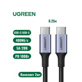 Найти - Кабель UGREEN US316 (комплект 2шт) Type C to Type C 5A PD 100W в оплетке 0.25 м, цвет черный (15799P)