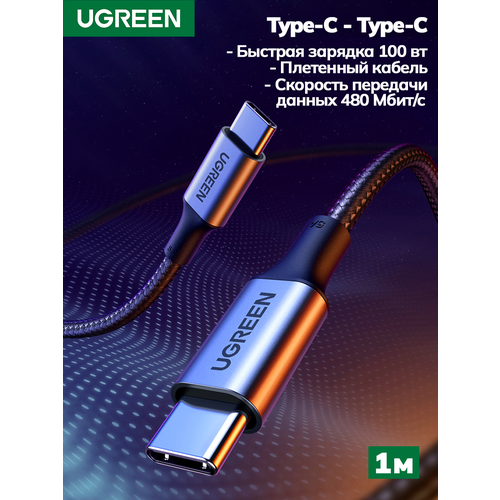 Найти - Кабель UGREEN US316 Type C - Type C, 5A , PD 100W. 1 м, Черный