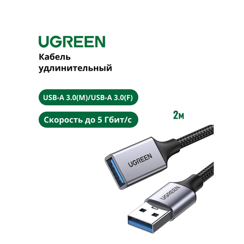 НАЙТИ ВЫГОДНЕЕ - Кабель удлинительный для компьютера UGREEN US115 USB-A 3.0(M) to USB-A 3.0(F) в оплетке 2 м, цвет черный (10497)