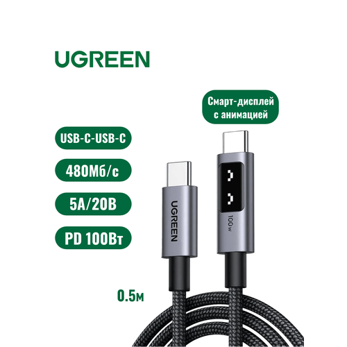 НАЙТИ ВЫГОДНЕЕ - Кабель UGREEN Robot L509 UNO (45612) Type C to Type C 5A PD 100W в оплетке 0.5 м, цвет черный
