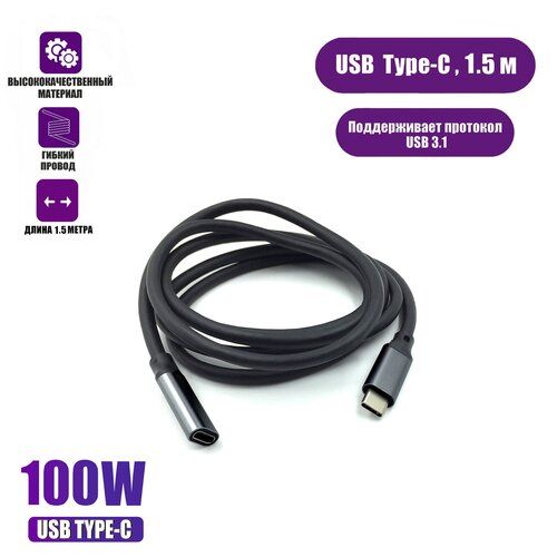 НАЙТИ ВЫГОДНЕЕ - Кабель USB Type-c, удлинитель 1.5 м, черный