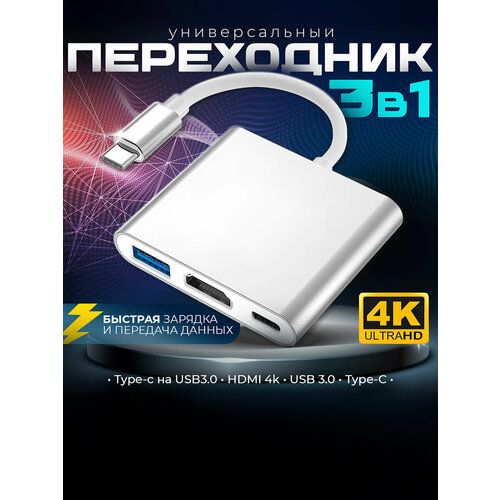 Адаптер Type-C на USB 3.0, HDMI, Type-C - это многофункциональное устройство, которое позволяет подключать различные аксессуары и устройства к вашему MacBook Pro, Air или iMac.