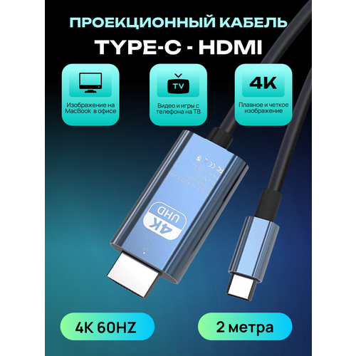 НАЙТИ ВЫГОДНЕЕ - Кабель USB Type С - HDMI, переходник с телефона на телевизор 4К 60Гц, провод 2 м, Ceoniya