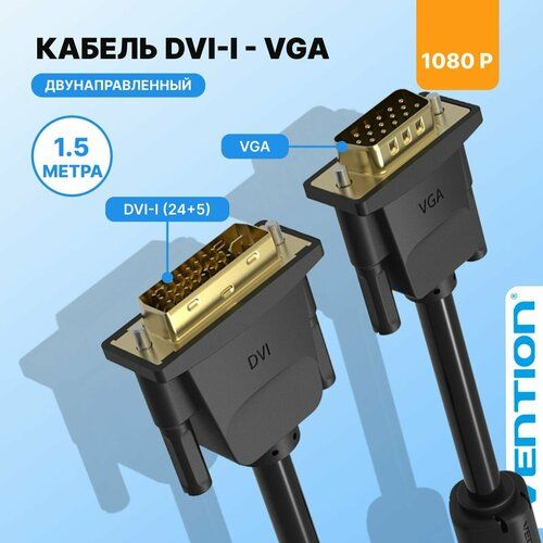 НАЙТИ ВЫГОДНЕЕ - Кабель DVI-I Dual link 24+5M/VGA 15M Vention переходник vga dvi, с ферритовым фильтром, длина 1.5м, черный
