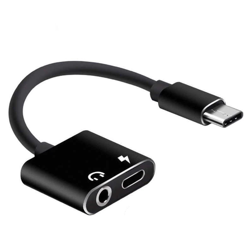 Переходник Type-C на 3,5mm Jack+зарядка PD, со шнуром, поддерживает не все samsung, черный