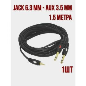Найти - Кабель аудио пара Jack 6.3 mm - AUX 3.5 mm - 1.5 метра-1шт