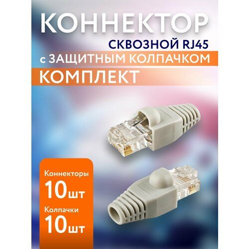 НАЙТИ ВЫГОДНЕЕ - 10шт Сквозной коннектор RJ45 с изолирующим колпачком для витой пары CAT5E, RJ-45 CAT 5E
