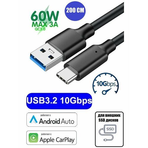 НАЙТИ ВЫГОДНЕЕ - Кабель USB 3.2 для внешнего SSD диска USB Type C 10 Гбит/с поддержка Android Auto 200 см