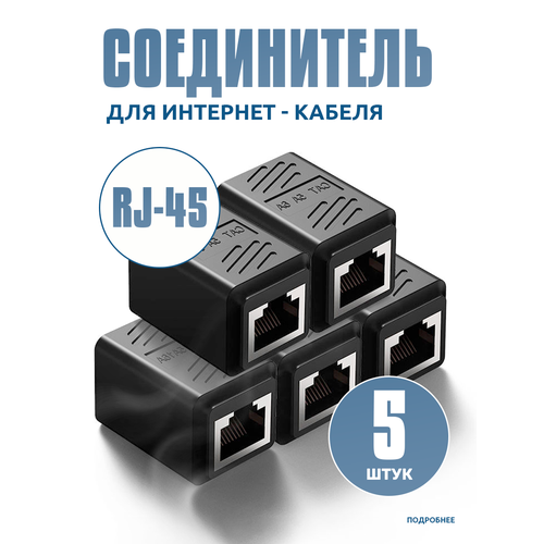 НАЙТИ ВЫГОДНЕЕ - Соединители интернет-кабелей RJ45F, быстрозажимные, для витой пары, черные, 5шт
