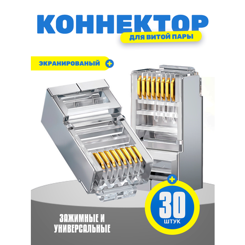 НАЙТИ ВЫГОДНЕЕ - Экранированный коннектор rj45 (8p8c) для витой пары, универсальный, 30 шт