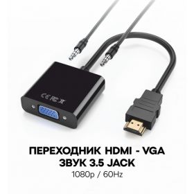 Активный преобразователь сигнала с HDMI на VGA поставляется в комплекте со звуковым кабелем. Переходник отлично подойдет для подключения видеокарты и монитора, проектора, некоторых видов тв-приставок, ноутбуков. Переходник / адаптер HDMI-VGA – это внешнее устройство, способное передавать видеосигнал отличного качества. Поддерживает разрешение макс. до 1080p (в зависимости от монитора и системы), оснащен разъемами VGA 15-pin / D-SUB (гнездо) / HDMI 1.3 B 19-pin (штекер). Переходник позволяет подключить монитор или проектор с разъемом VGA D-SUB к любому устройству, оснащенному разъемом HDMI. Не требуется установка дополнительного ПО. Питание: от HDMI-порта. Адаптер преобразует цифровой сигнал в аналоговый сигнал. Преобразование работает только в одном направлении от HDMI к VGA. Внимание: Для работы с Playstation 4, необходим переходник с дополнительным питанием.