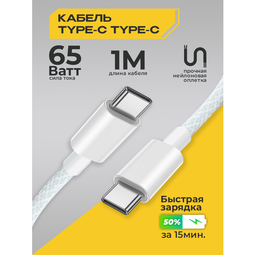 Найти - Провод Type C Type C , WALКЕR C860, 1 метр, белый, 65W, Type-C-Type-C, поддержка PD, нейлон // провод type c, провод для айфона, провод type c type c