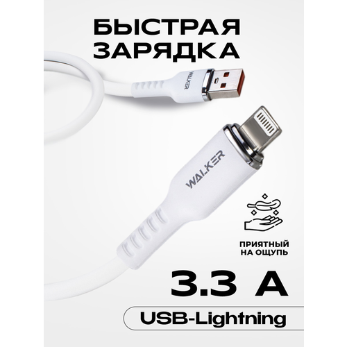 НАЙТИ ВЫГОДНЕЕ - Кабель USB с быстрой зарядкой и передачей данных, WALKER, C795, Lightning, 1м, 3.3А, мягкий силиконовый провод лайтинг для зарядки айфона, белый