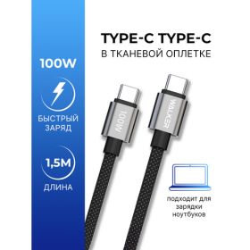 Найти - Кабель Type-C-Type-C, 1.5 метра, 100W, для зарядки ноутбука, телефона планшета, провод на айфон, шнур на андроид, черный