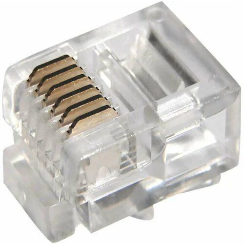 Этот разъём размещается на конце телефонного кабеля для соединения с розеткой соответствующего типа. Штекер выполнен из прозрачного качественного пластика, имеет 6 посадочных мест и 6 ножей-контактов, покрытых слоем технического золота толщиной 3 микрометра для улучшения пропускной способности разъёма.