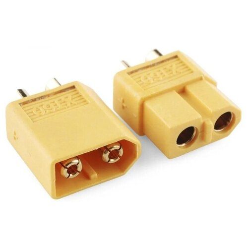 Разъемы изготовлены из высокотемпературного нейлона с позолоченными подпружиненными контактами. Контакты позволяют «подпаивать» к ним провод сечением более 3мм². Существует достаточно распространенное мнение, что контакты силовых разъемов должны иметь плоскую поверхность для увеличения площади контакта. В разъеме же XT60 контакт разделен на 4 части, что обеспечивает плотное прилегание к поверхности ответного разъема и делает разъем XT60 менее зависимым от загрязнения.