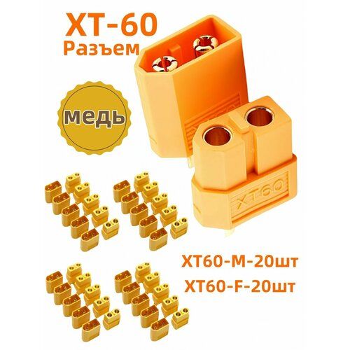 Разъем xt60 представляет собой комплект из 20 штук, состоящий из 10 разъемов типа "папа" и 10 разъемов типа "мама".
