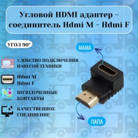 Найти - Угловой hdmi адаптер - соединитель Hdmi M - Hdmi F для удобного подключения навесного телевизора экрана