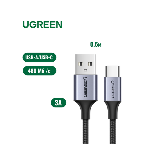 НАЙТИ ВЫГОДНЕЕ - Кабель UGREEN US288 USB-A to Type C 3A в оплетке 0.5 м, цвет черный (60125)