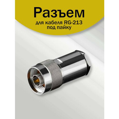 Радиочастотный разъем (штекер) N-типа под пайку (жила) и прижим гайкой на кабель типоразмера RG-213. Обычно устанавливается со стороны соединителей (на кабельные сборки). Используется в широком круге высокочастотной радиоаппаратуры с номинальным волновым сопротивлением 50 Ом.