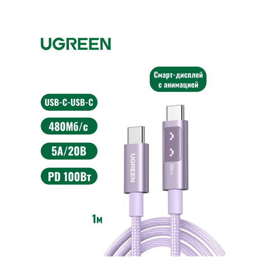 Найти - Кабель UGREEN Robot L509 UNO (65092) Type C to Type C 5A PD 100W в оплетке 1 м, цвет фиолетовый
