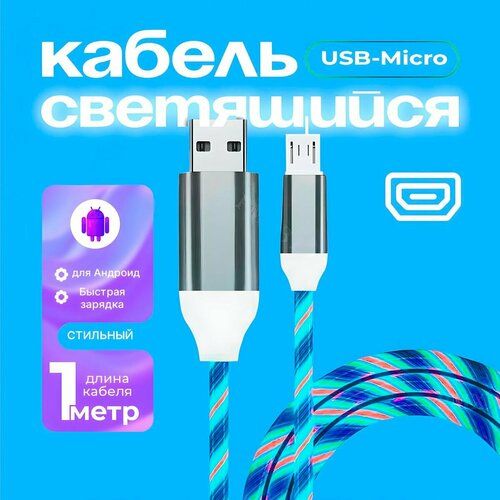 Найти - Светящийся кабель / быстрая зарядка / светящийся кабель для Андроида / кабель для зарядки телефона micro-USB/ Разноцветный/Multi