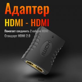 Переходник HDMI 2.0 (мама – мама) используется для удлинения кабелей HDMI и подключения других устройств с разъемами HDMI, таких как тв-приставка, монитор, видеопроектор, ноутбук и др. Это переходник HDMI HDMI, также известный как переходник мама мама, широко применяется в различных ситуациях, где необходим надежный контакт между двумя HDMI-кабелями.