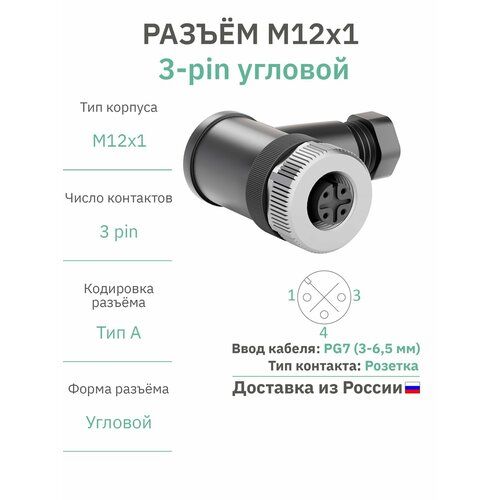 НАЙТИ ВЫГОДНЕЕ - Разъём М12 3 pin угловой / розетка (мама) / PG7 (3-6,5 мм диаметр под кабель) / модель RAZM-F12-C3A