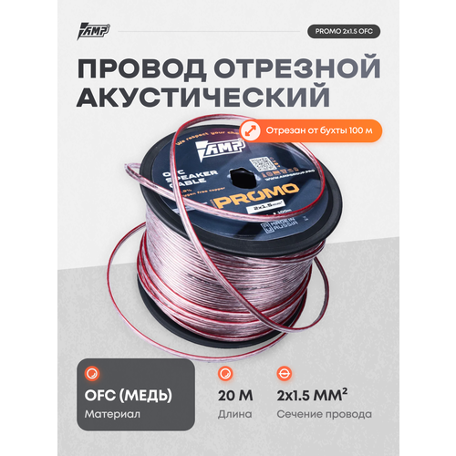 НАЙТИ ВЫГОДНЕЕ - Акустический кабель AMP PROMO, 2x1.5, OFC, медь 100%, 20 м, черный/красный