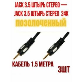 Найти - Аудио кабель джек-джек 3.5 (папа) 1.5 м, стерео позолоченный - 3шт.