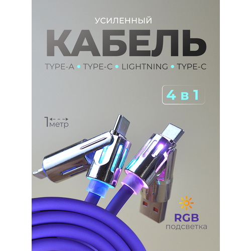 НАЙТИ ВЫГОДНЕЕ - Кабель с переходниками для быстрой зарядки и передачи данных, 4 в 1 USB Apple Type-C, толстый, с подсветкой, фиолетовый