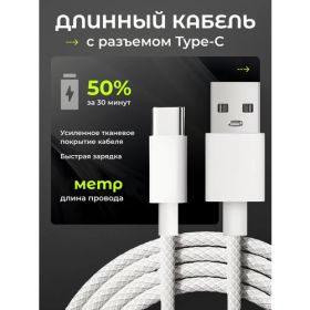 Представляем вашему вниманию зарядный провод USB type-c в элегантном белом цвете. Этот кабель для быстрой зарядки телефона станет отличным решением для надежной зарядки ваших мобильных устройств Android и Iphone 15,16 . Шнур type-c оснащен высокой пропускной способностью, обеспечивая быструю зарядку, что позволяет вам всегда оставаться на связи и не беспокоиться о разрядке батареи . Провод тайпси идеально подходит для использования с различными гаджетами, включая смартфоны и планшеты андроид . юсб провод из нейлона обладает прочной конструкцией, что обеспечивает долговечность и надежность в использовании. Специально разработанный дизайн в черном цвете делает кабель питания type c стильным аксессуаром, который легко впишется в любой интерьер. Тайп си кабель с длинным проводом 1 метр может не только зарядить ваше устройство, но и передать данные с высокой скоростью. Виртуально вы можете подключить кабель type-c быстрая зарядка 1 м к компьютеру или ноутбуку, чтобы быстро синхронизировать файлы и фотографии. Компактные размеры делают универсальный сетевой шнур зарядки удобным для транспортировки, так что вы можете взять его с собой в поездки или на работу. Выберите шнур для зарядки андроид и наслаждайтесь быстрой зарядкой и удобным использованием ваших мобильных устройств samsung huawei xiaomi