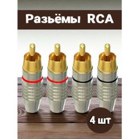 Штекер, разъем RCA, металл, позолоченный, винт перо, 4 штуки в комплекте