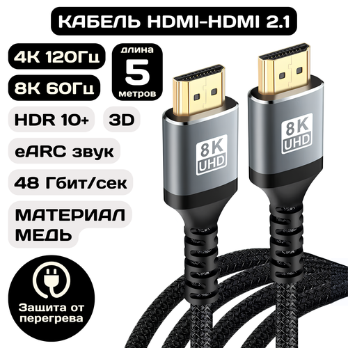 НАЙТИ ВЫГОДНЕЕ - Кабель HDMI 2.1 8К 60Гц и 4K 120Гц на 5 метров / Видеокабель HDMI нейлоновый с поддержкой HDR и eARC