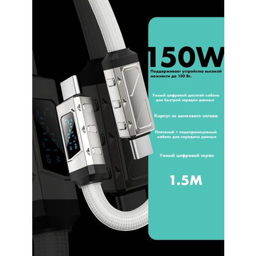 Найти - Кабель с дисплеем для быстрой зарядки и передачи данных Type-C - Type-C, цвет белый.