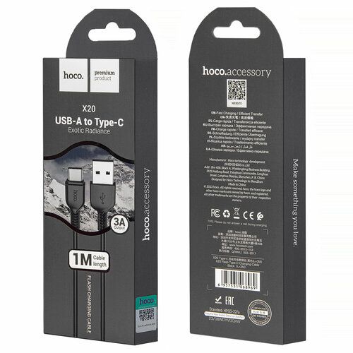НАЙТИ ВЫГОДНЕЕ - Кабель Hoco X20 Flash USB - USB Type-C, 1 м, 1 шт, черный