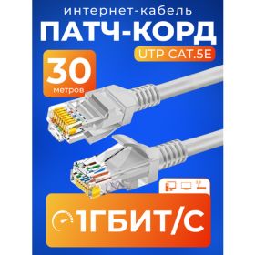 НАЙТИ ВЫГОДНЕЕ - Патч корд 30 м кат 5е, интернет кабель RJ45 Cat.5e UTP, сетевой Ethernet Lan для соединения интернета роутера, серый