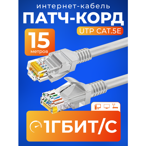 НАЙТИ ВЫГОДНЕЕ - Патч корд 15 м кат 5е, интернет кабель RJ45 Cat.5e UTP, сетевой Ethernet Lan для соединения интернета роутера, серый