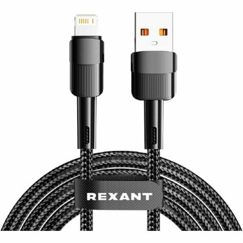 НАЙТИ ВЫГОДНЕЕ - Rexant кабели 18-7060 Кабель USB-A – Lightning для Apple, 2,4А, 1м, в черной нейлоновой оплетке