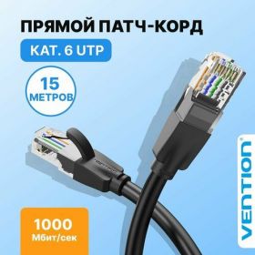 Патч-корд UTP cat.6, RJ45 длина 15 метров/ Vention LAN для ПК, WiFi роутера smart tv, арт. IBEBN