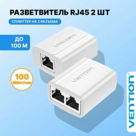 Vention Сплиттер RJ45 F (мама) / RJ45 F (мама) х 2 8p8c для интернет-кабеля на 2 порта, разветвитель Ethernet для патч-кордов, 2 шт, арт. IPTW0