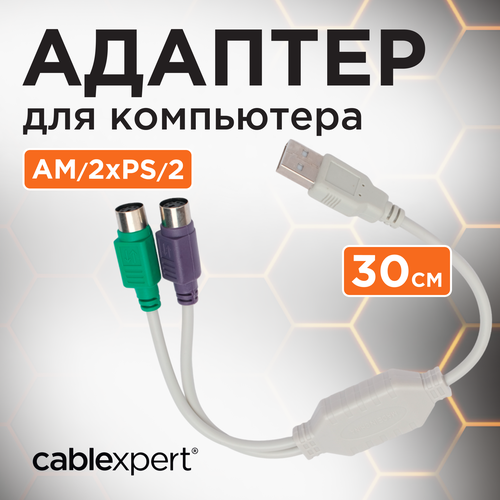 Переходник/адаптер Gembird USB - PS/2 (UAPS12), длина 0.3 м, 1 шт., белый 838631060
