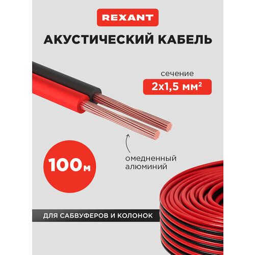 Кабель REXANT 01-6106-3, площадь сечения 1.5 кв. мм, длина 100 м, 1 шт., черный/красный