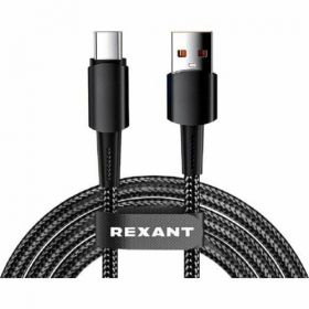 Rexant кабели 18-7063 Кабель USB-A – Type-C, 6А, 120Вт, 1м, в черной нейлоновой оплетке