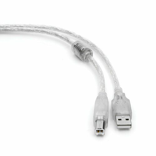 Кабель Cablexpert USB2.0 Pro, AM/BM, 0.75м, экранированный, ферритовое кольцо, прозрачный CCF-USB2-AMBM-TR-0.75M подходит для USB 2.0 высокоскоростной передачи данных. Скорость передачи данных: до 480 Мбит/сек Экранирование: двойное (фольга + сетка) Толщина жил (передача данных / питание): 28 / 24 AWG