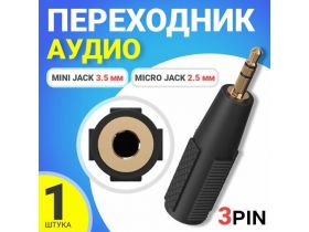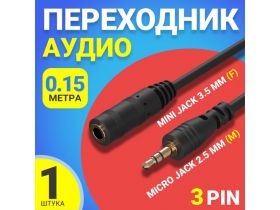 Аудио переходник адаптер GSMIN А29 Mini Jack 3.5 (F) - Micro Jack 2.5 (M) 3pin (Черный) 101807604174