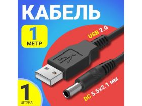 Кабель питания универсальный GSMIN USB 2.0 (M) - DC 5.5 x 2.1 мм (M) (1 м) (Черный) 101807718613